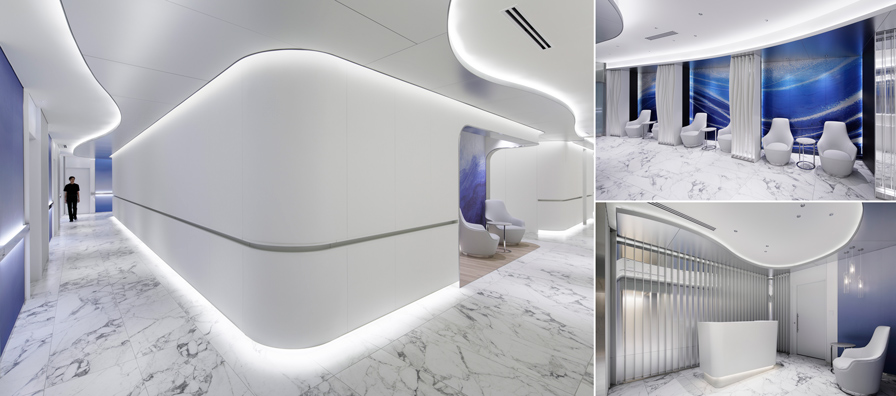 王:从概念设计阶段开始,在考虑到其他地区同类设施的基础上,我们一边倾听客户的需求,如“强调其作为尖端医疗设施的先进性”“更加突出地区性”“创造前所未见的空间”等诉求,一边对其进行梳理整合。最终确定了项目基调:一个提供奢华体验的场所,而非传统的医院空间。