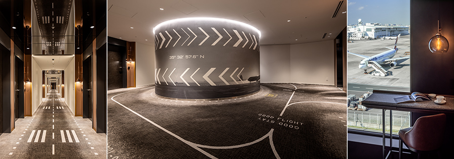 该酒店规划在作为羽田机场旧址第1区整备项目开发的“HANEDA INNOVATION CITY”(HICity)ZONE A的5层~10层,因为紧邻羽田机场,所以如何充分利用这一地理位置并将其融入设计就成为了项目的关键所在。