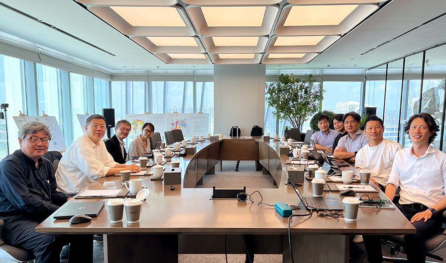 右起依次为国际设计部门部长 丁炳均、城市设计部门部长 野村哲、日建・深圳规划总监 刘超、建筑设计部门 手钱光明、设计PM部部长 张健。