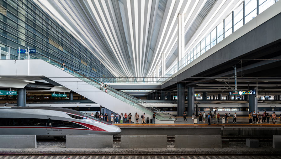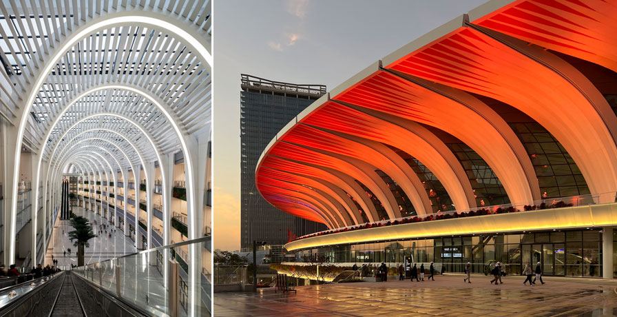 刘超:白云站的开发使移动空间在心理和物理上都“更近一步”。线路之间换乘的距离缩短,让车站更加利民便民。同时,轨道上空的综合设施紧贴车站,缩短了车站与城市之间的心理距离。另外,当人们处于呼吸广场上时,能够感受到的并不是国内车站前常有的被车辆占据的交通广场,而是人来人往、车站与城市融为一体的活动广场。