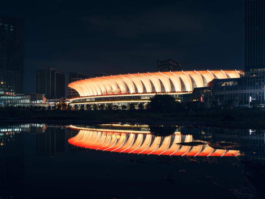 2023年12月,位于中国广州市北部新开发区的广州白云站开通运营。白云站是一个总建筑面积达41万㎡的公共交通枢纽,其中包含了高铁在内的24条地面线路和6条地铁线,与其周边约50万㎡的办公和商业设施等业态进行了站城一体化开发(TOD)。日建设计在TOD项目的国际竞赛中脱颖而出,有幸负责此次方案设计。
