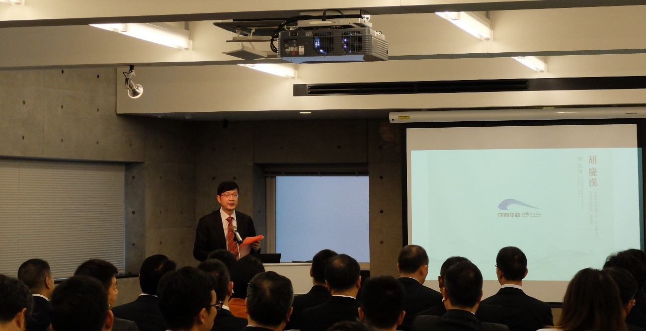 交流研讨会由日建设计常务执行董事大松敦主持,芶正礼秘书长首先进行了致辞。致辞中,芶正礼秘书长表示:“正值《中日和平友好条约》缔结40周年之际,中日关系重回正常轨道、重现积极势头,双边经贸合作潜能将进一步释放。在这样的时间节点,参与和推动中日城市交流合作,可谓恰逢其时,也倍感荣幸。作为中国西南地区经济、金融、科技、商贸、物流的中心,「投资西部、首选成都」已成为国际社会的广泛共识。长期以来,成都与日本各界保持着良好的交流合作关系,日建设计也已参与成都火车北站地下商业街、成都地铁19号线的规划设计。当前,成都正处在加速发展的重要时期,“大城市病”日益凸显,亟需学习世界各国通过轨道交通开发引领城市发展的先进经验。成都轨道交通建设起步较晚,但发展很快。东京是全球TOD综合开发的先行者和集大成者,热忱欢迎各位专家、企业家关注成都、投资成都,特别是加强在TOD项目策划、设计、咨询、运营等领域的合作,共享机遇、共同发展。”