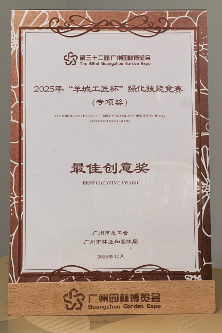 本届特设“大师园”单元,邀请全球顶尖设计团队,以“视觉与灵魂”为题,打造具有国际标识度的园林艺术精品。日建设计作为受邀设计方之一,在广州新中轴临江绿带与海心沙区域呈现了一场关于时间、城市与生命力的空间叙事。设计作品荣获2025年“羊城工匠杯”绿化技能竞赛(专项奖)最佳创意奖。