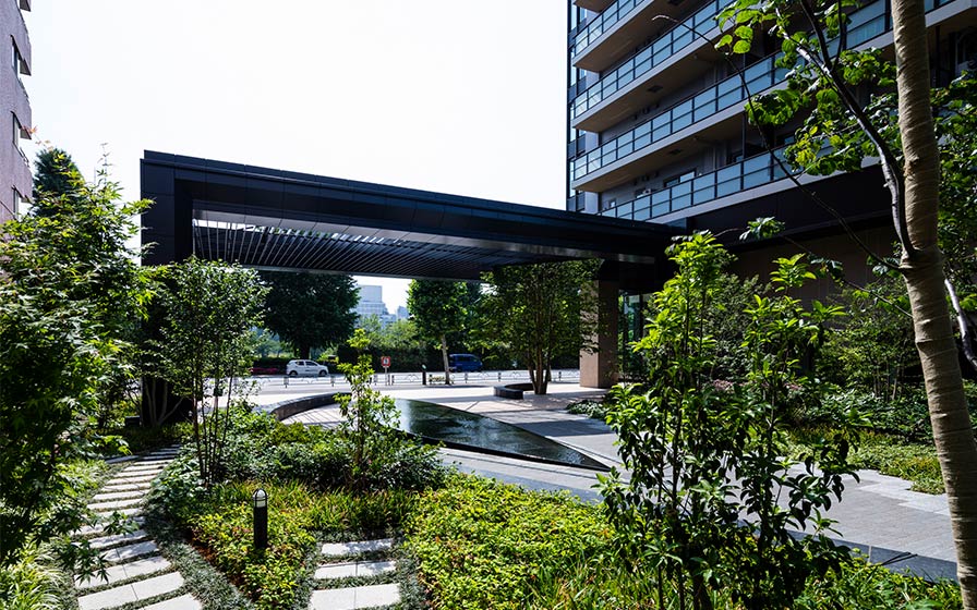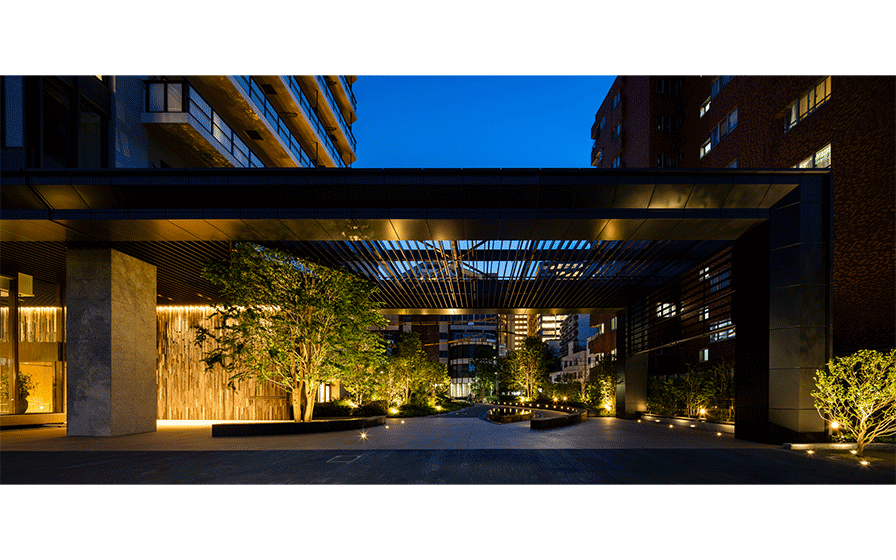 这座分售式集体住宅坐落于得天独厚的绝佳地段,不仅将上野公园丰富的自然风光尽收眼底,还毗邻充满历史韵味的旧岩崎庭园和自古以来深受人们喜爱的不忍池。在东西道路的连接处规划了公共开放空间,旨在通过打造人、自然与风景的通道,提升街区的魅力。让人联想到木格栅的立面设计重新创造出传承历史、传统和文化的地区象征性风景,低层部分水平铺陈开来的廊架兼具缓解高楼风的功能与提升建筑格调的设计性。