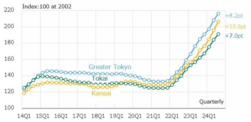 *1: The Nikken Sekkei Standard Building Price Index (NSBPI) shows movements in construction prices, calculated independently by Nikken Sekkei Ltd. Using standard rental office space as a quantitative model, the index is calculated and converted into an index of construction prices that reflect prevailing prices, as identified through independent surveys from time to time. The first quarter (Q1) is from January to March, Q2 is April - June, Q3 is July - September, and Q4 is October - December.