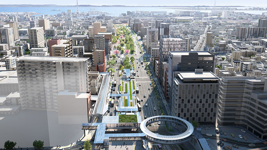In addition, the circular deck on the east side of Kintetsu Yokkaichi Station, which will become the face of the town, and the design of street furniture such as street lighting, benches and signs for the roads and footpaths that form the framework of the city are all “Yokkaichi originals.” The completion of the project is not the final goal, and we are also working on the formulation of strategies aimed at the design control of the entire road space and the utilization of the space after it has been completed.