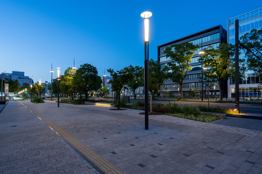 For example, the design of the facade, pavement and plant species selection in front of the adjacent complex “Sakuramachi Kumamoto” was coordinated with the architects to ensure a unified design, and at first glance it is difficult to tell where the private and public areas begin and end. In addition to the pavement and planting, the lighting and color schemes also crossed various boundaries to achieve a unified design.
