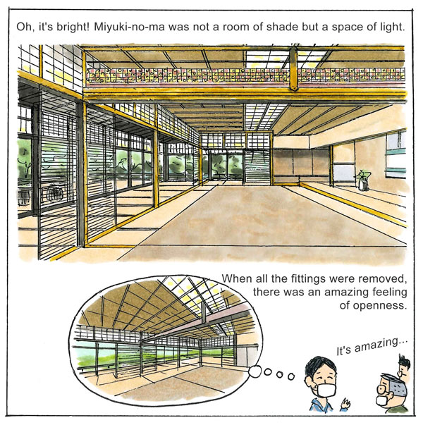 However, the Association’s activities stirred the ire of contemporary architectural world bigwigs. Horiguchi's path to employment with government agencies and major conglomerates became blocked. Later, as the war intensified, Horiguchi turned away from actual work and devoted himself to researching classical Japanese architecture, including teahouses. The results of his research finally came to fruition in the Miyuki-no-ma, which was completed five years after the war ended.
