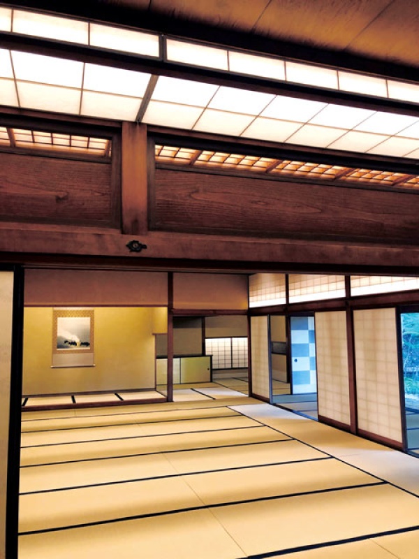 Completion date: The existing wooden buildings were built in the Meiji period. The relocated country house is 400 years old. Miyuki-no-ma and Zangetsu-no-ma were built in 1950. The refurbished Kiku-no-ma and Sakura-no-ma were designed by Sutemi Horiguchi in 1958.