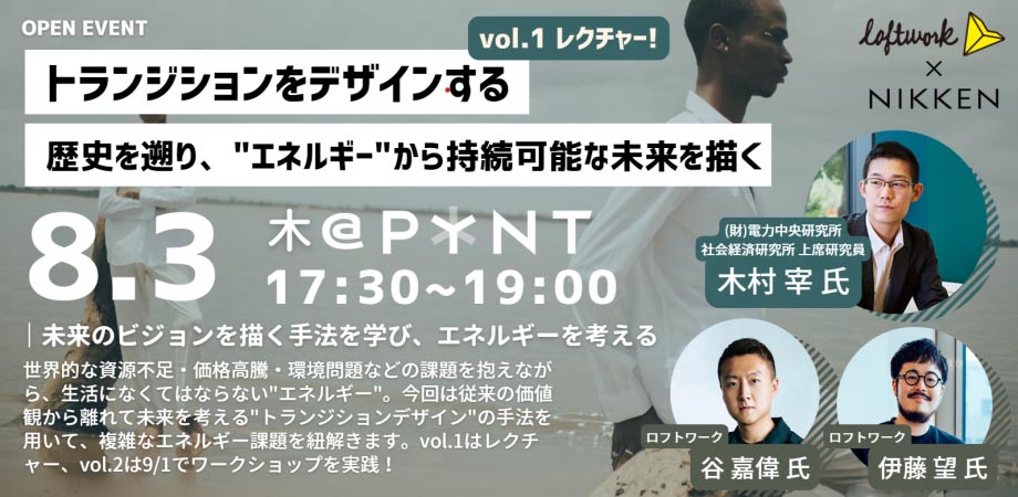 【トランジションをデザインする vol.1 レクチャー】歴史を遡り、"エネルギー"から持続可能な未来を描く 定員:35名