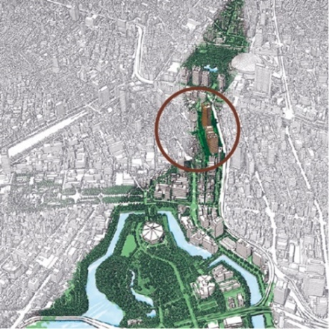 貨物駅跡地開発を利用して皇居と後楽園の緑をつないだ