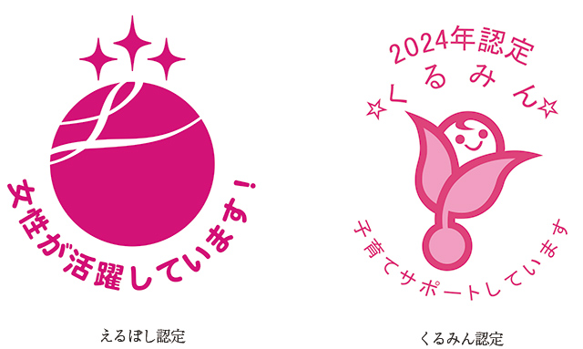 日建設計は、2017年7月に「えるぼし認定」の5つの評価項目すべての基準を満たす事業主として段階は3段階認定(最上位評価)を、2024年8月に「くるみん認定」(2回目)を受けました。ダイバーシティ推進の一環として、女性活躍の推進に積極的に取り組み、これらの認証を通じて、社員一人ひとりが多様な働き方を実現できる職場環境の整備を推進し、持続可能な社会の実現に貢献しています。