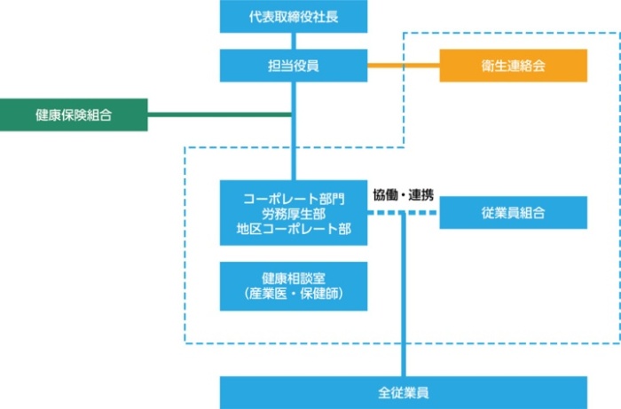 会社は職員が安心して働く環境づくりと、個人の健康維持に対する支援に積極的に取り組むことを宣言する。