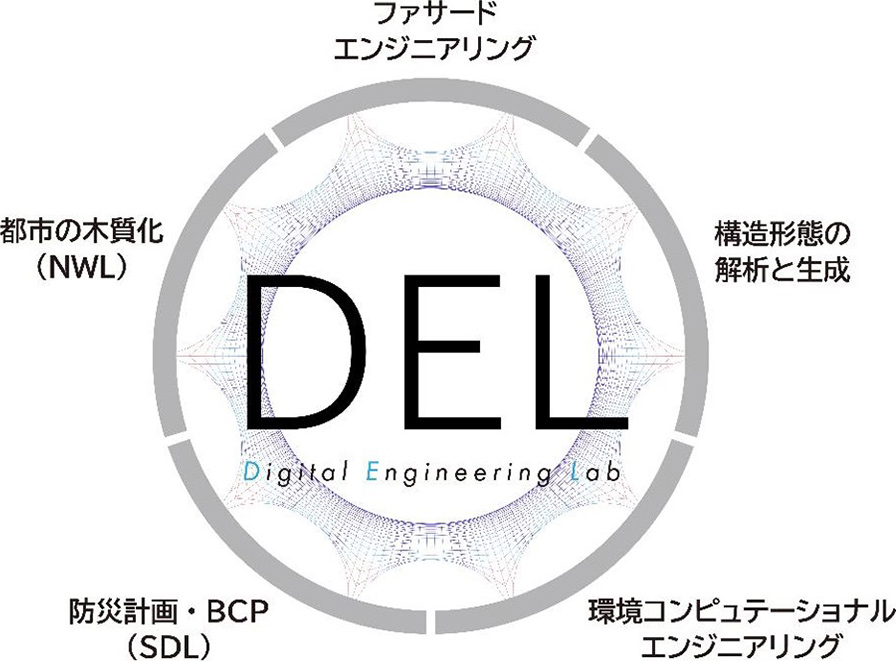DELでは、現代の建築設計・都市計画に求められる新規領域・領域横断の設計技術について、5つの専門チームが技術提案や設計支援を行っている