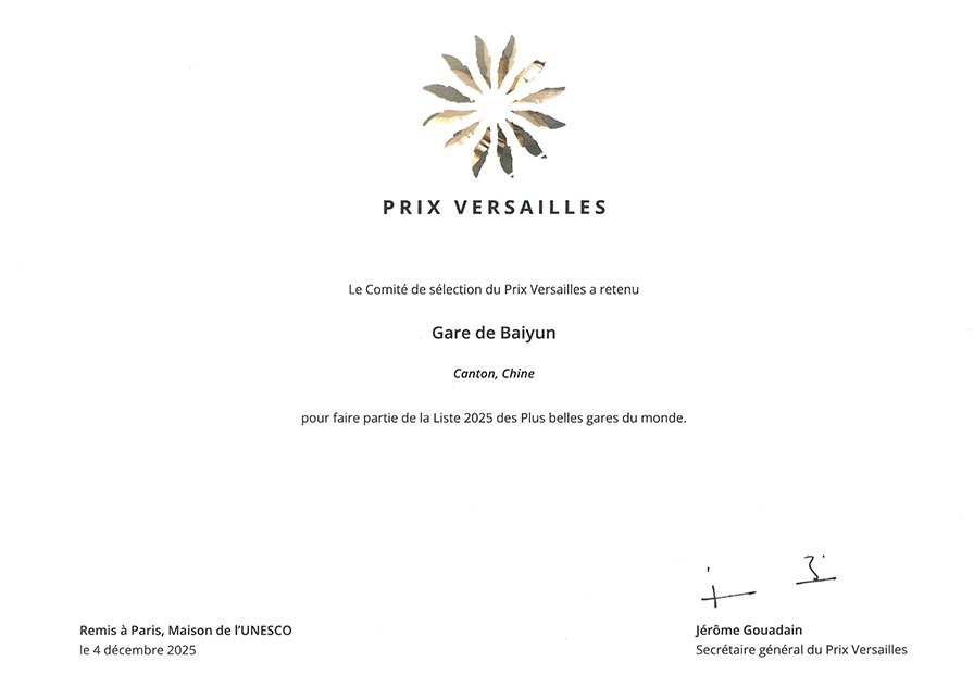 中国・広州白雲駅が2025年ベルサイユ賞(Prix Versailles)で「世界で最も美しい駅」の一つに選定されました。