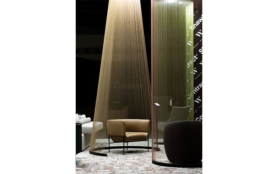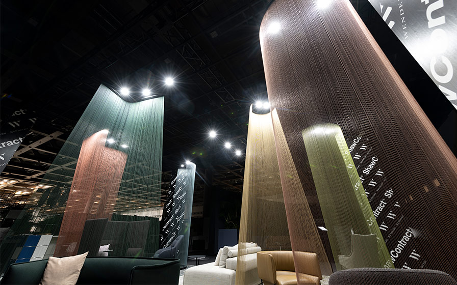 国際家具見本市における「Shaw Contract」(カーペット)と 「Wendelbo」(家具)の2ブランドの展示計画。展示期間は3日間、舞台となるスペースは6×8mと限られた空間である。「いかに来場者の目を引き、記憶に残る体験を提供出来るか」にデザインの力点を置いた。忘れがたい体験により、ショウルームへの再訪,集客を狙う。一時の限定的な商品紹介より「豊かな体験」こそが、潜在顧客を惹きつけるプロモーションに繋がると考えた。家具一点一点にスポットライトが降り注ぐよう「カーペットの原糸」を放射状に造形することにより、カーペットの奥行きも感じさせるようなデザインとした。最小限の材料を用いて、短期間で、最大限の印象的な体験を創り出した展示空間である。