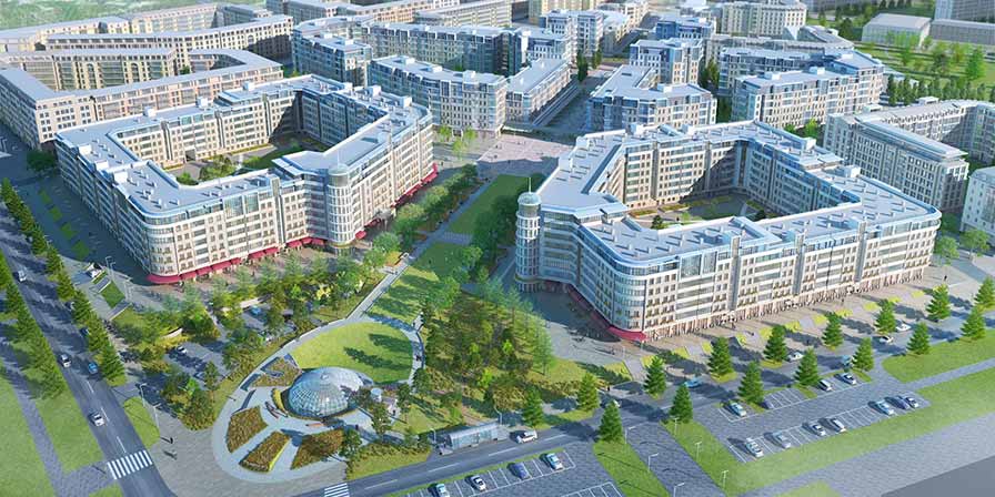シベリア管区の中心都市クラスノヤルスク市の大型住宅開発。 まち全体のマスタープランの設計を経て、現地専門家との協力の下、デザインやレイアウト提案を行った。継続して開発全体の デザインを方向付ける中心軸の4街区の外観、ランドスケープ 設計に加え、セールスパビリオンの設計を担当。日建設計総合研究所(NSRI)との協働により、ロシア初の「スマートシティ」に挑戦。都市スケールから詳細設計まで、ハード&ソフトの両面で提案し、先進的な都市生活の場を提供した。